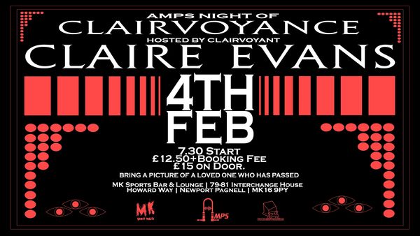 Join us at AMPS for a powerful and moving Night of Clairvoyance, hosted by the gifted and experienced Claire Evans.